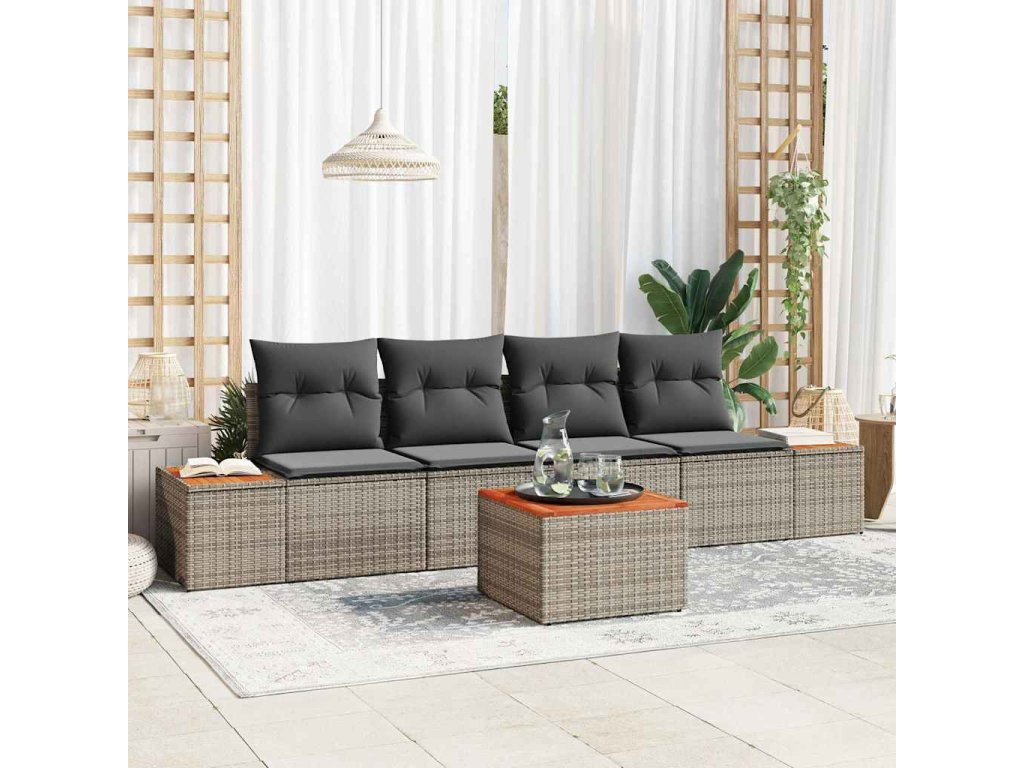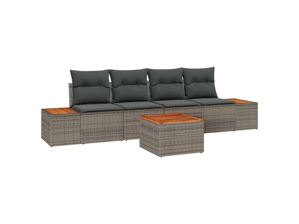 Sada zahradních pohovek s polštářem 5 pcs Šedá Poly ratan 3356689