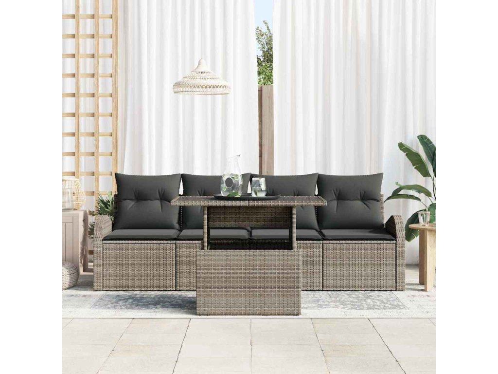 Sada zahradních pohovek s polštářem 5 pcs Šedá Poly Ratan 3357282