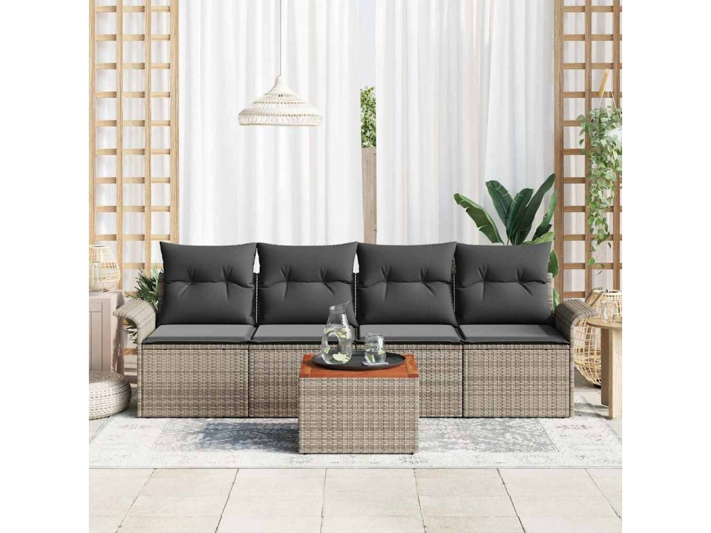 Sada zahradních pohovek s polštářem 5 pcs Šedá polyratan 3347258