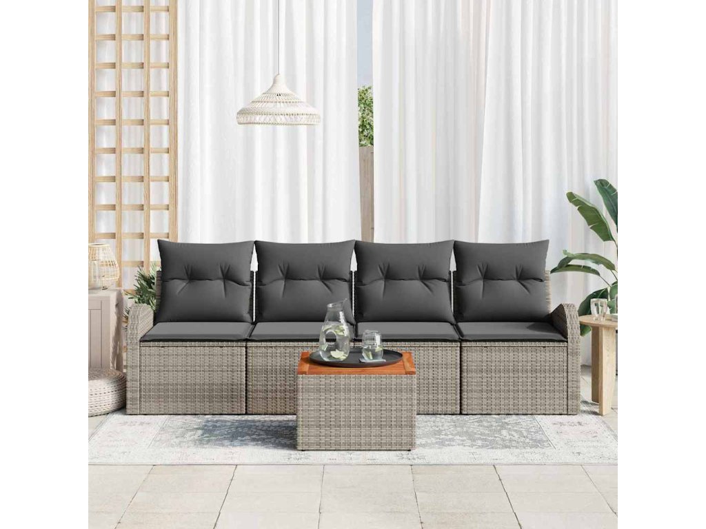 Sada zahradních pohovek s polštářem 5 pcs Šedá polyratan 3347510