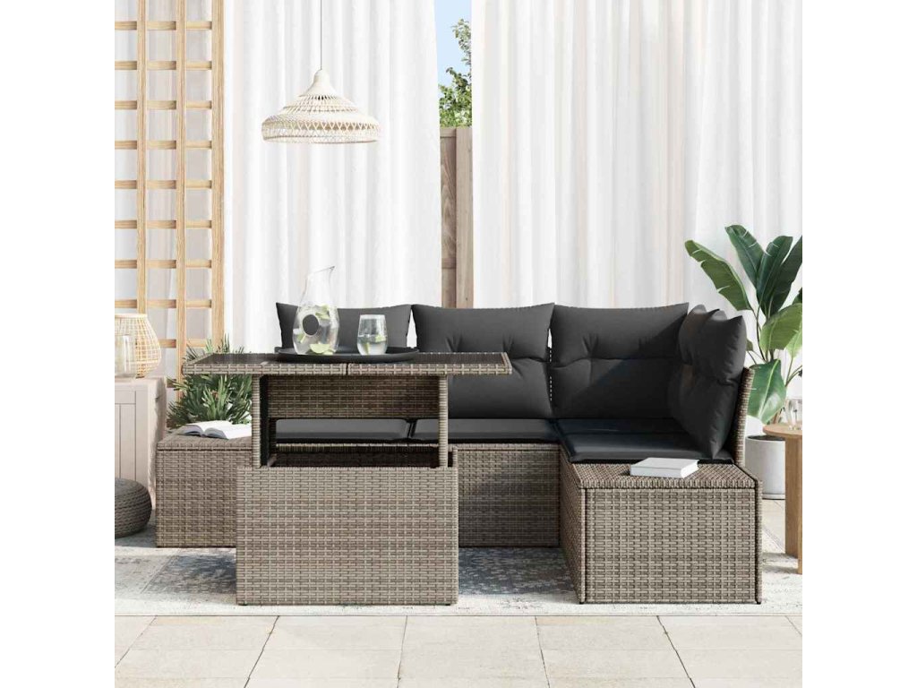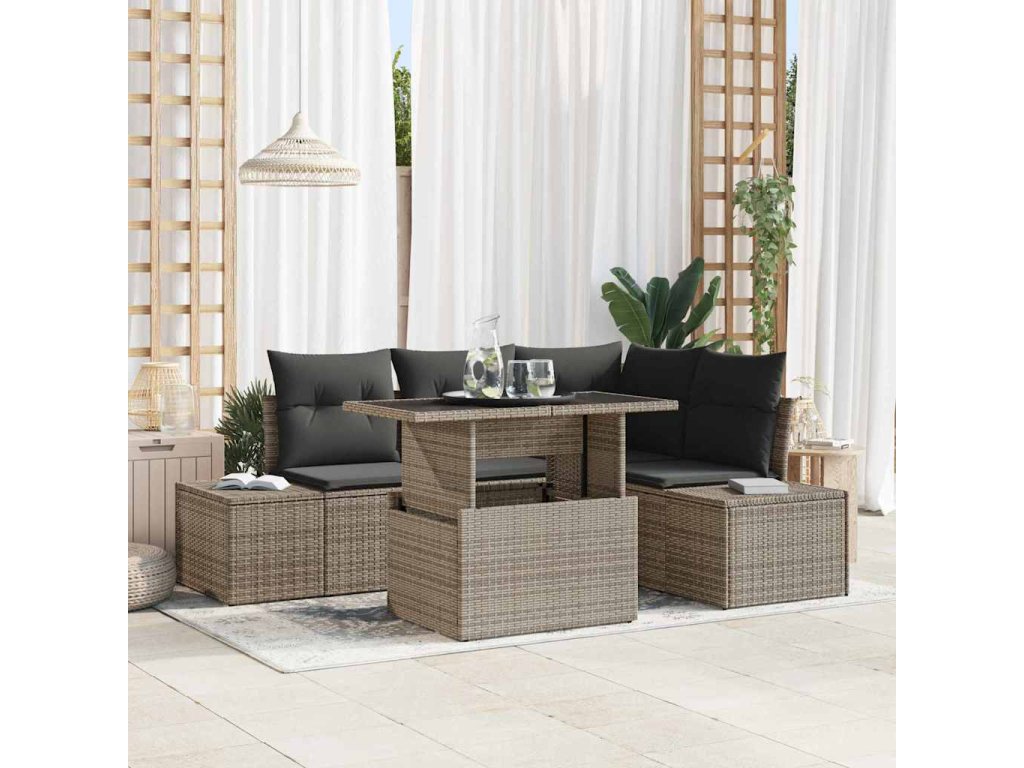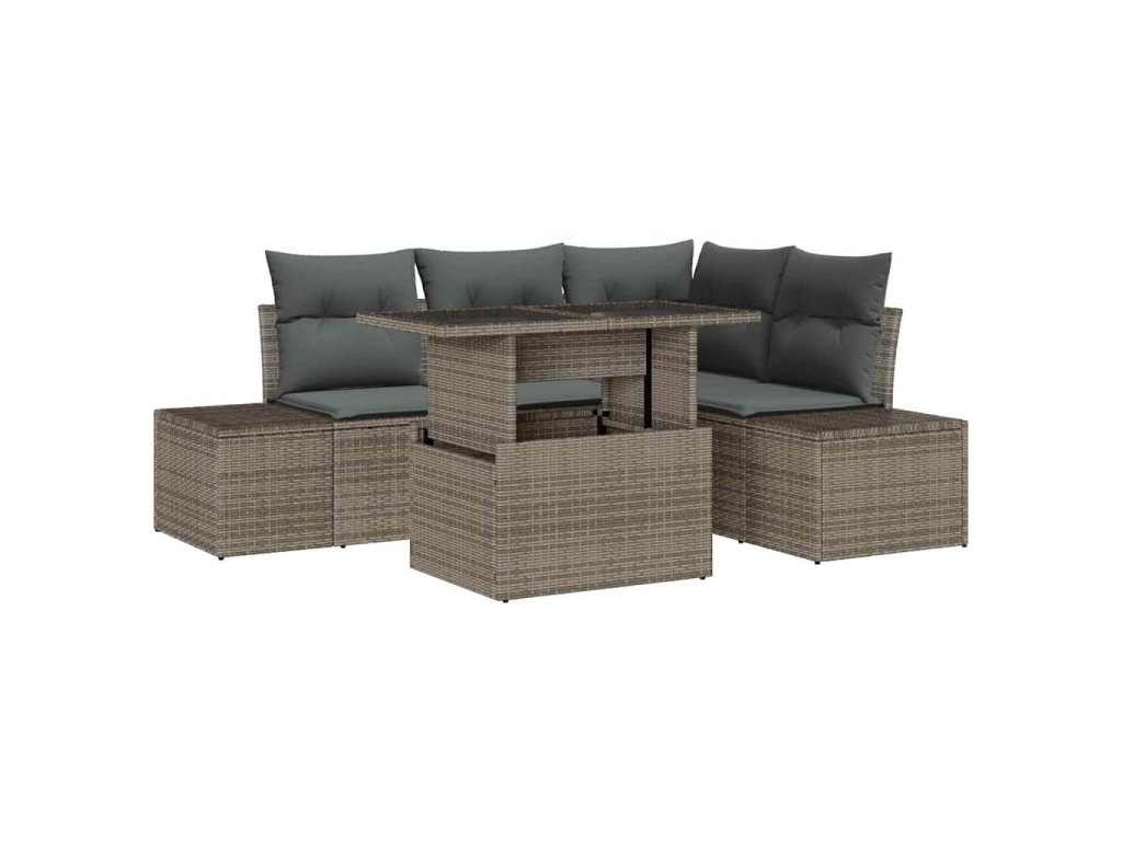 Sada zahradních pohovek s polštářem 5 pcs Šedá polyratan 3349175