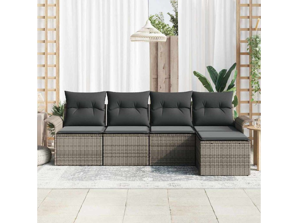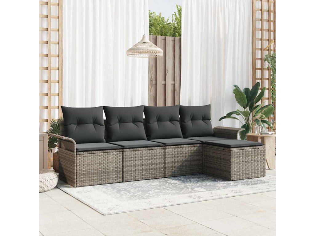 Sada zahradních pohovek s polštářem 5 pcs Šedá polyratan 3353988