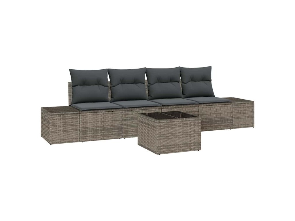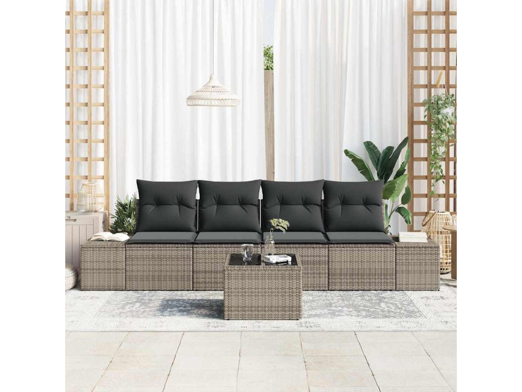 Sada zahradních pohovek s polštářem 5 pcs Šedá polyratan 3355598