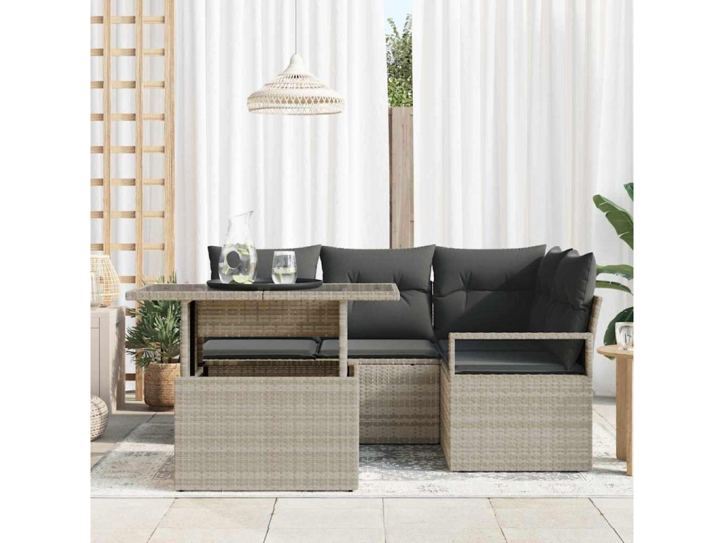 Sada zahradních pohovek s polštářem 5 pcs Světle šedá polyratan 3348818