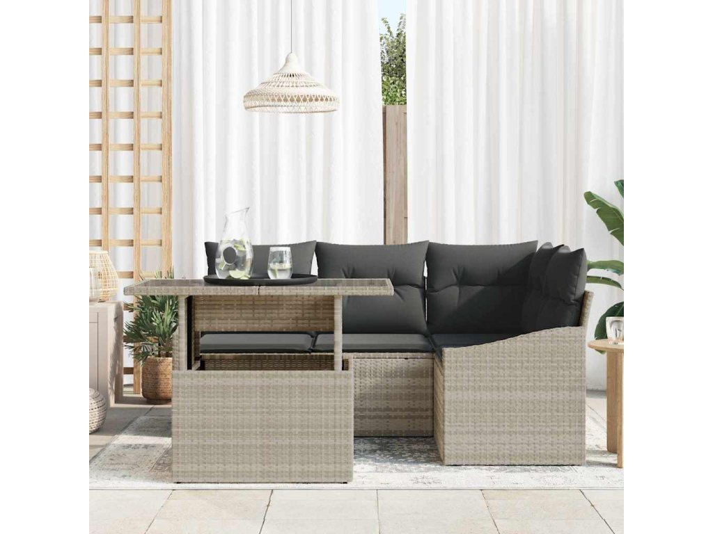 Sada zahradních pohovek s polštářem 5 pcs Světle šedá polyratan 3348998