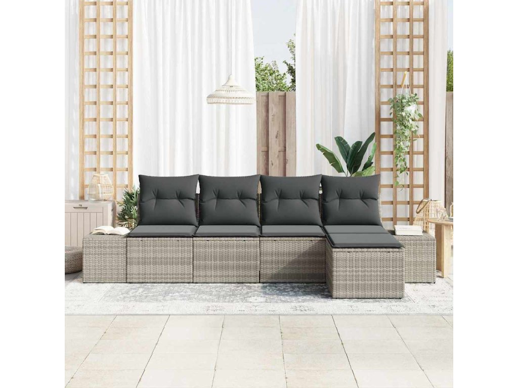 Sada zahradních pohovek s polštářem 5 pcs Světle šedá polyratan 3355691