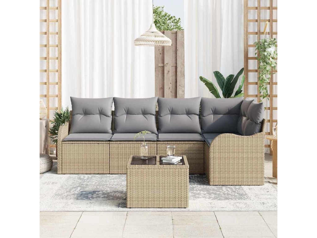 Sada zahradních pohovek s polštářem 6 pcs Béžová Poly ratan 3345710
