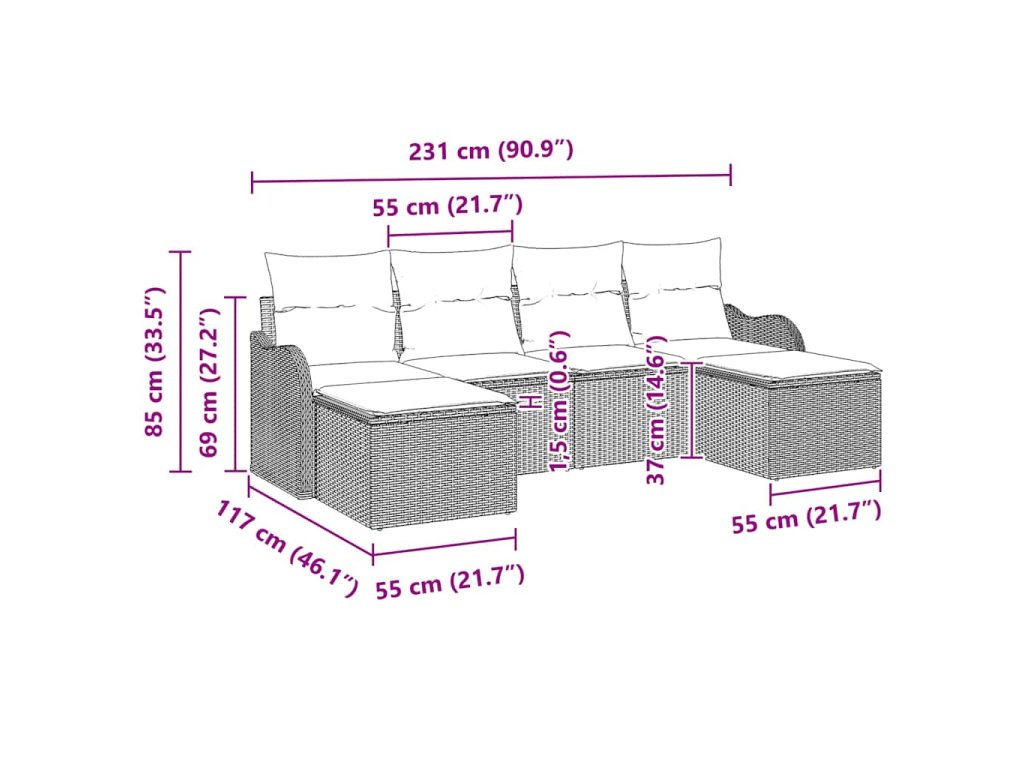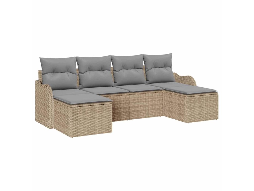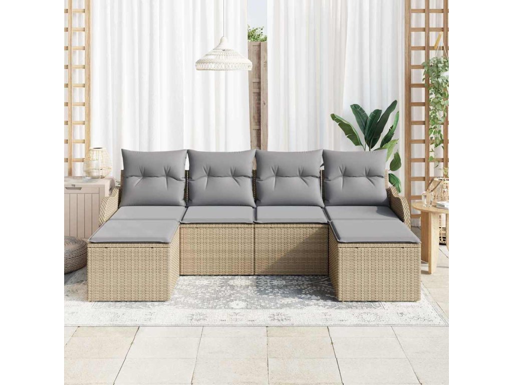 Sada zahradních pohovek s polštářem 6 pcs Béžová Poly ratan 3345810