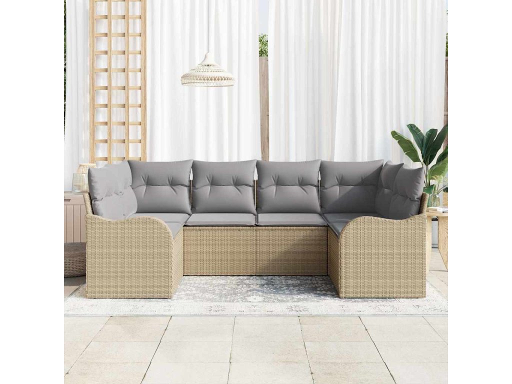 Sada zahradních pohovek s polštářem 6 pcs Béžová Poly ratan 3345840