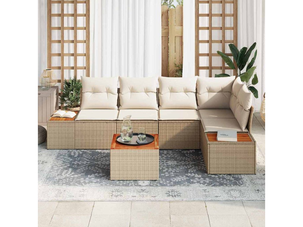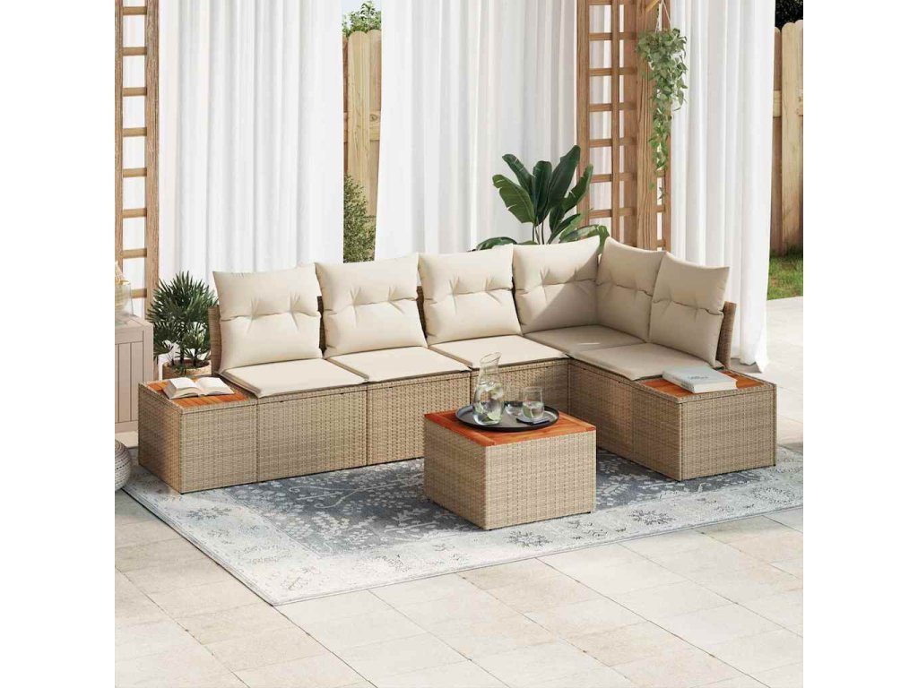Sada zahradních pohovek s polštářem 6 pcs Béžová Poly ratan 3348092
