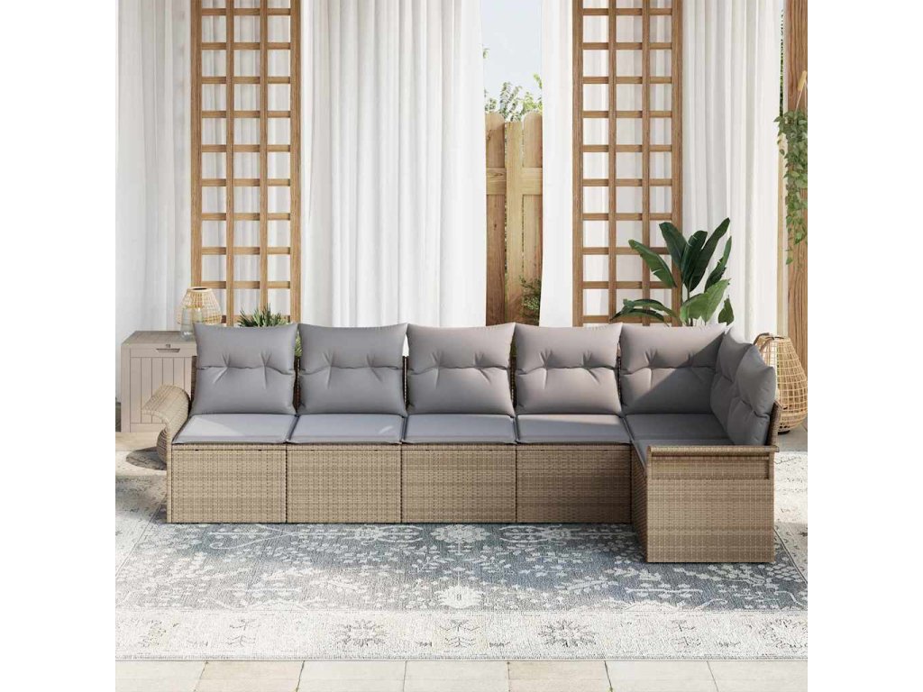 Sada zahradních pohovek s polštářem 6 pcs Béžová Poly ratan 3354049