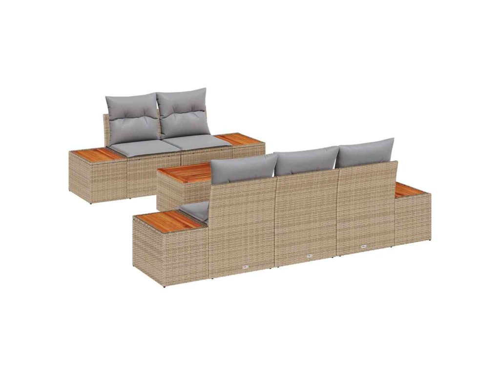 Sada zahradních pohovek s polštářem 6 pcs Béžová Poly ratan 3356695