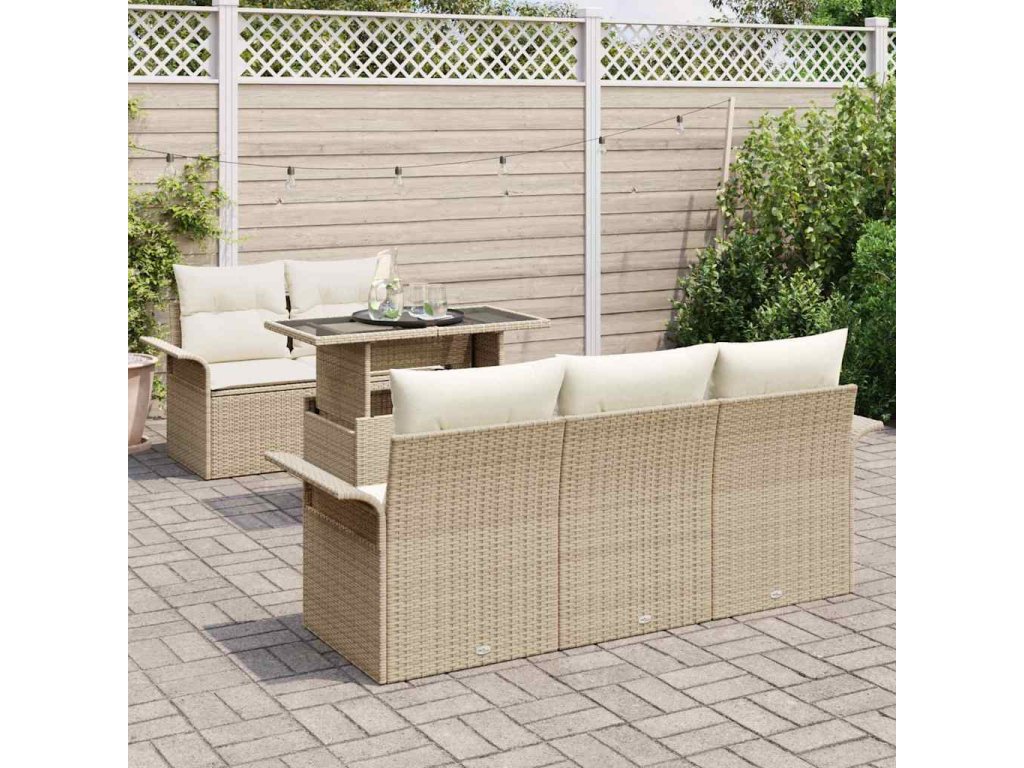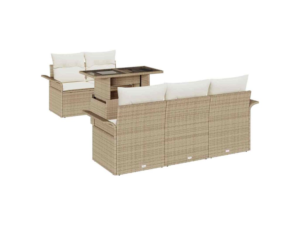 Sada zahradních pohovek s polštářem 6 pcs Béžová Poly Ratan 3356934