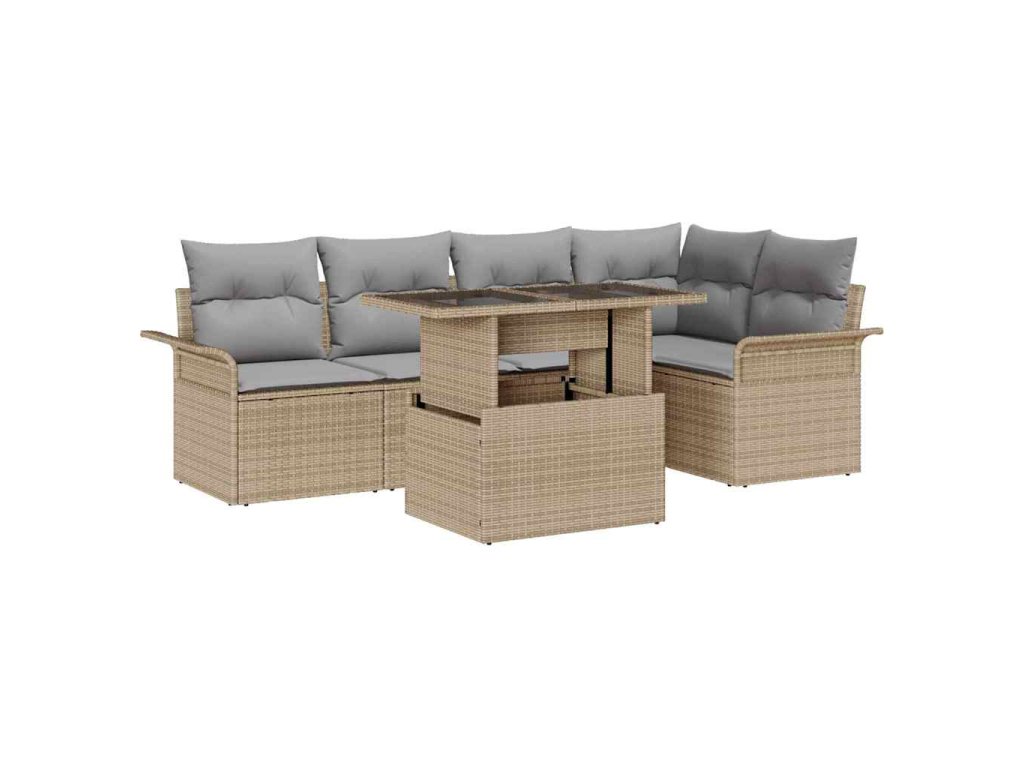 Sada zahradních pohovek s polštářem 6 pcs Béžová Poly ratan 3357023