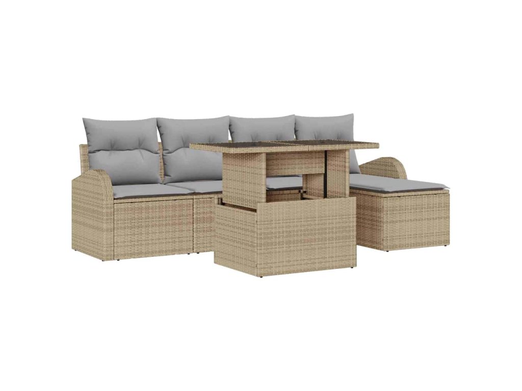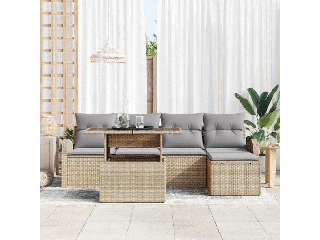 Sada zahradních pohovek s polštářem 6 pcs Béžová Poly ratan 3357363