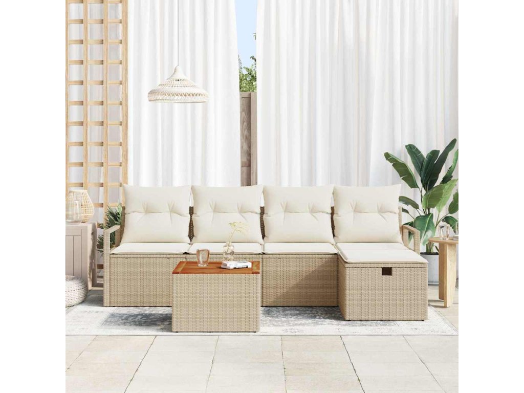 Sada zahradních pohovek s polštářem 6 pcs Béžová Poly ratan 3359533