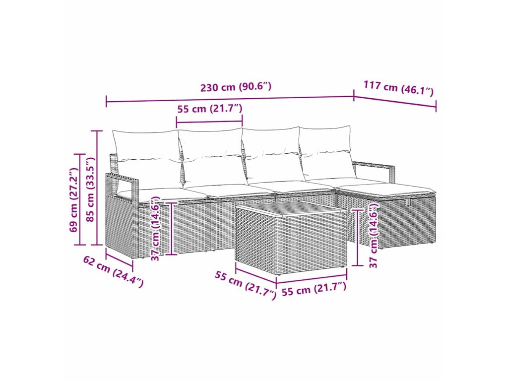 - Poly ratanová kvalita: Vyrobeno z odolného poly ratanu, souprava nabízí výjimečnou dlouhověkost a vzhled. Materiál odolává různým podmínkám počasí, takže je ideální na ven. Poly ratan dodává eleganci s texturovaným povrchem, který skvěle ladí s moderním stylem a snadno se čistí.