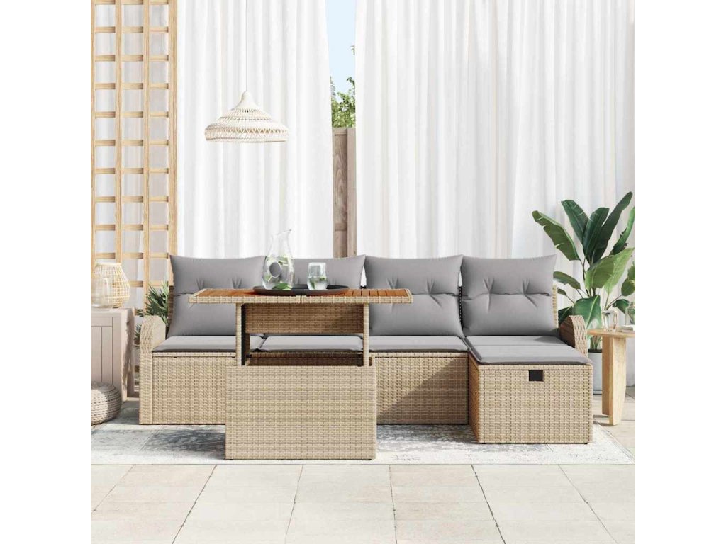 Sada zahradních pohovek s polštářem 6 pcs Béžová Poly ratan 3359962