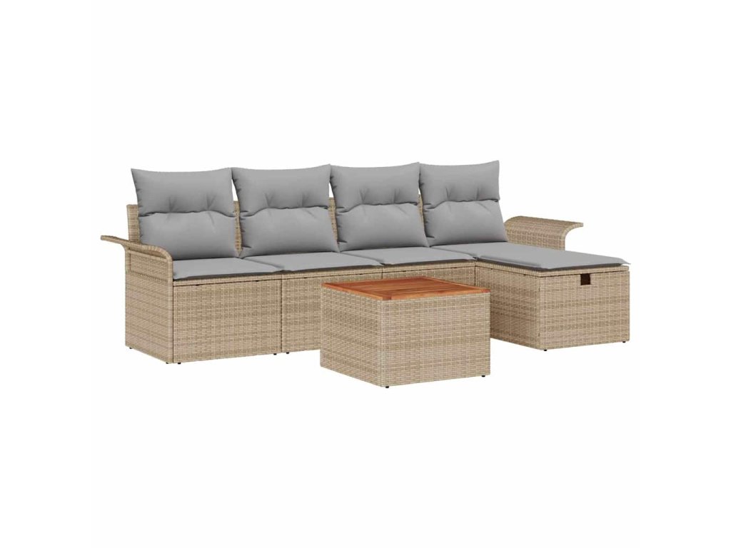 Sada zahradních pohovek s polštářem 6 pcs Béžová Poly ratan 3360780