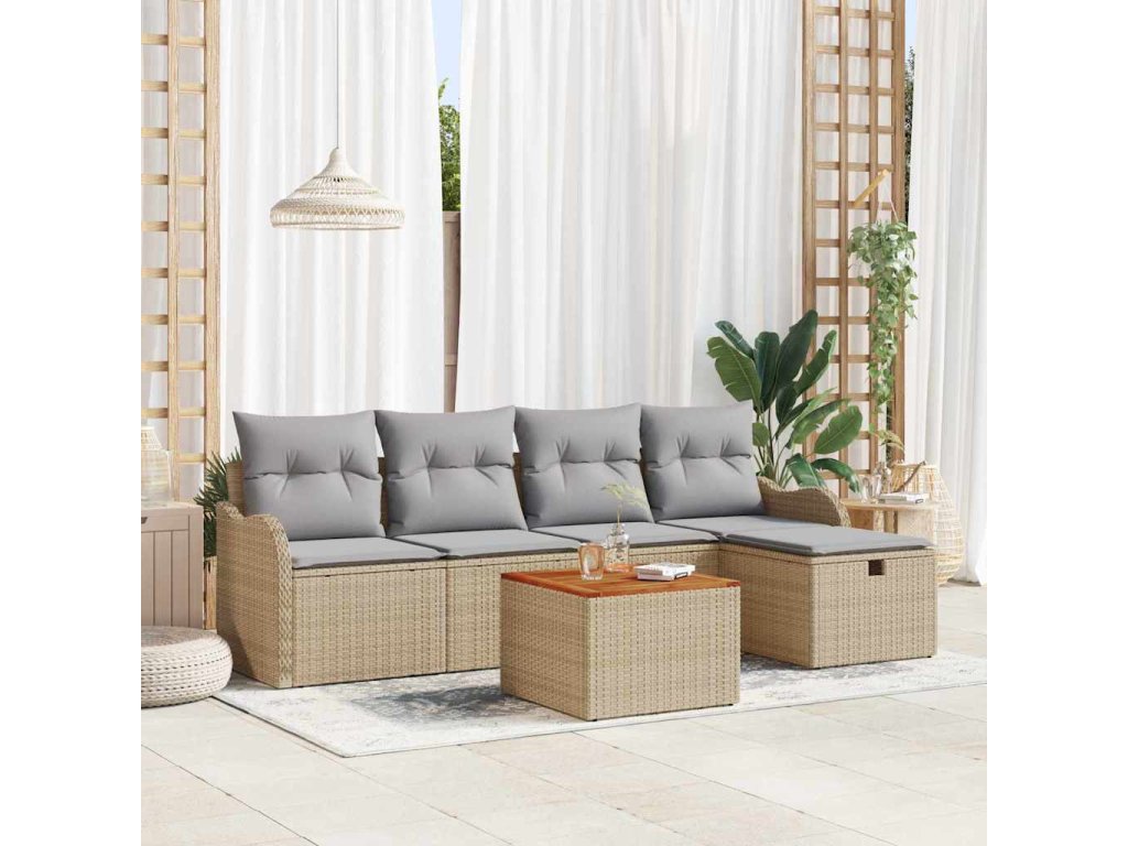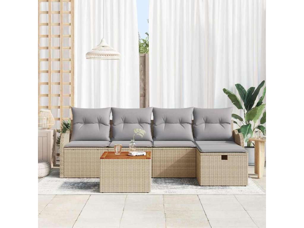 Sada zahradních pohovek s polštářem 6 pcs Béžová Poly ratan 3360808