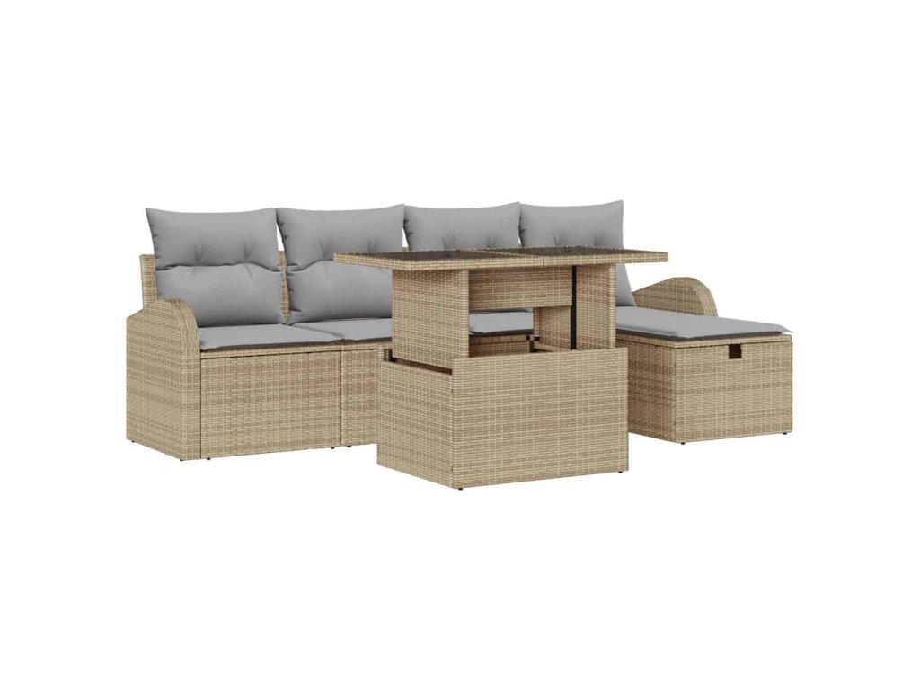 Sada zahradních pohovek s polštářem 6 pcs Béžová Poly ratan 3361079