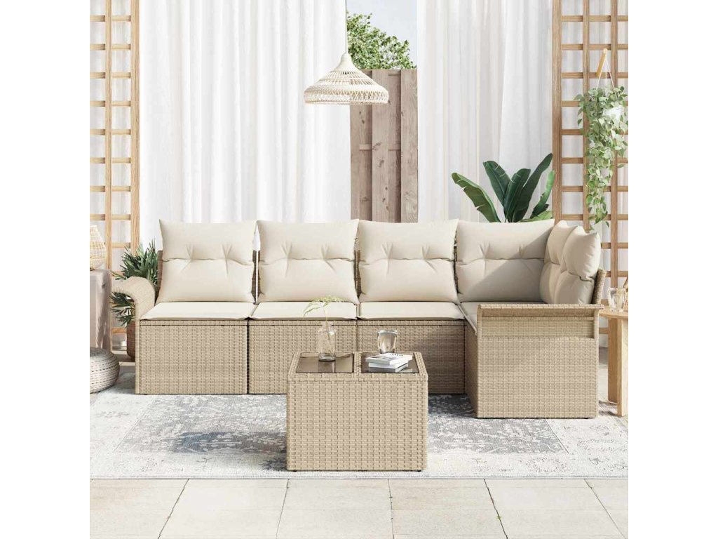 Sada zahradních pohovek s polštářem 6 pcs Béžová polyratan 3345371