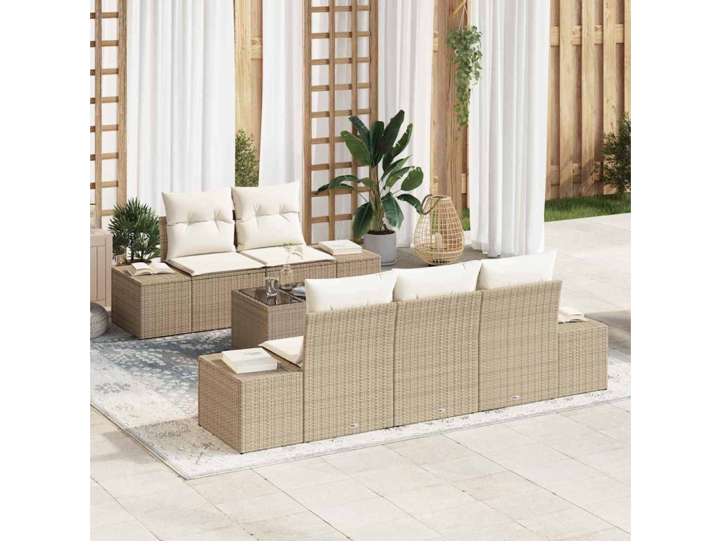 Sada zahradních pohovek s polštářem 6 pcs Béžová polyratan 3346941