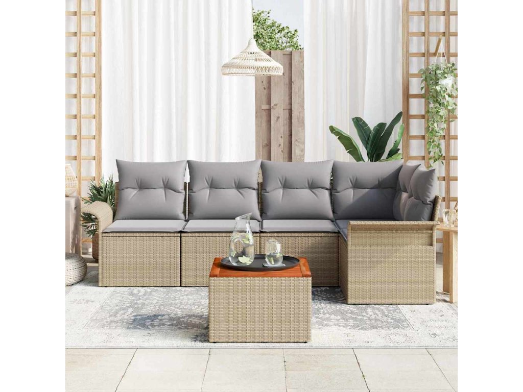 Sada zahradních pohovek s polštářem 6 pcs Béžová polyratan 3347329