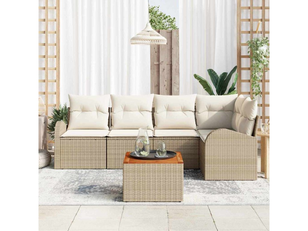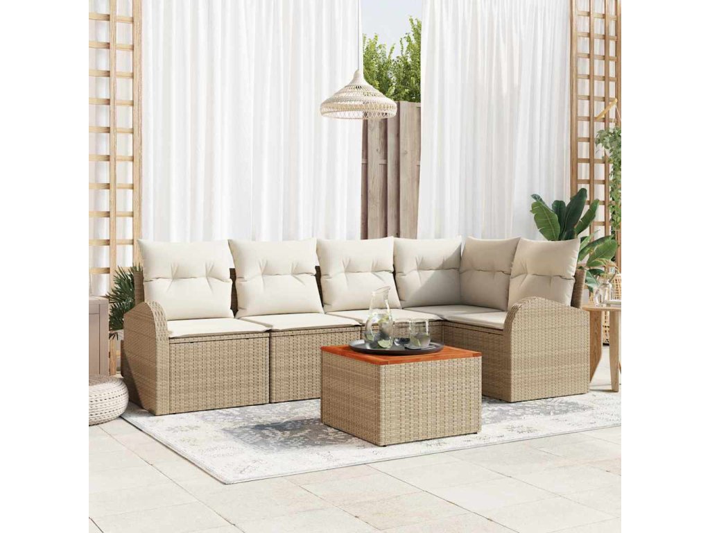 Sada zahradních pohovek s polštářem 6 pcs Béžová polyratan 3347582