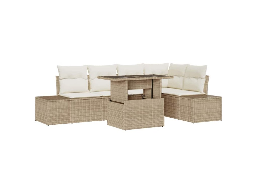 Sada zahradních pohovek s polštářem 6 pcs Béžová polyratan 3349187