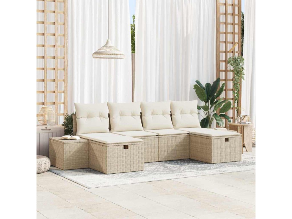 Sada zahradních pohovek s polštářem 6 pcs Béžová polyratan 3359420