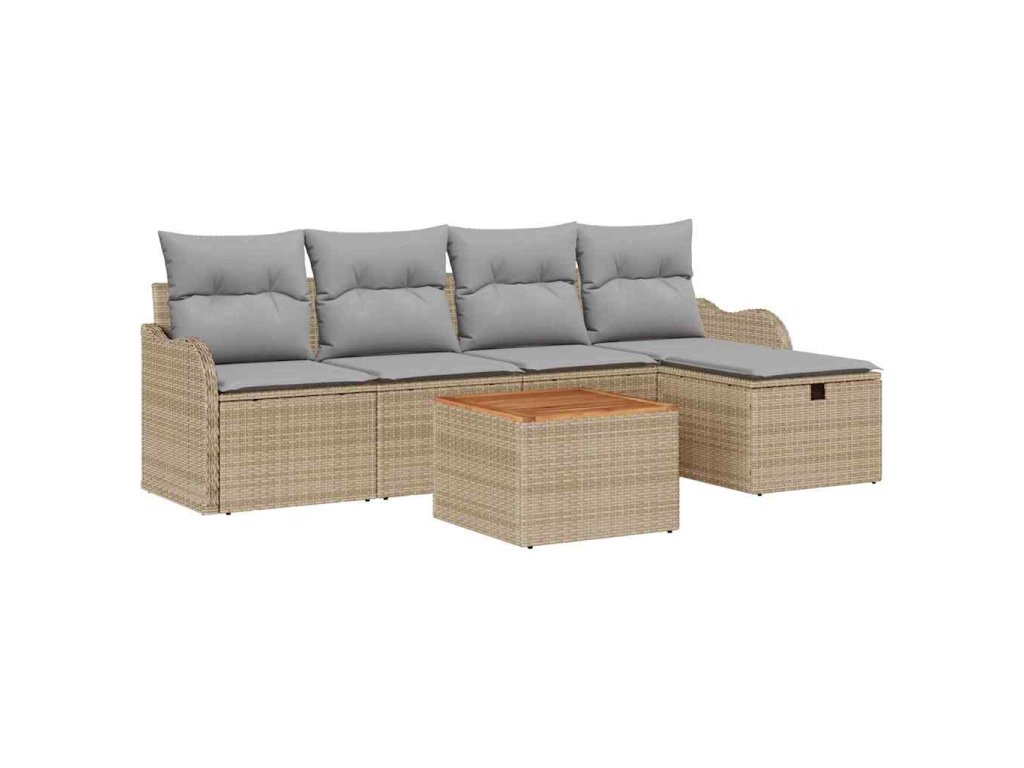 Sada zahradních pohovek s polštářem 6 pcs Béžová polyratan 3359476