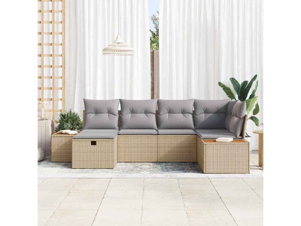 Sada zahradních pohovek s polštářem 6 pcs Béžová polyratan 3360964