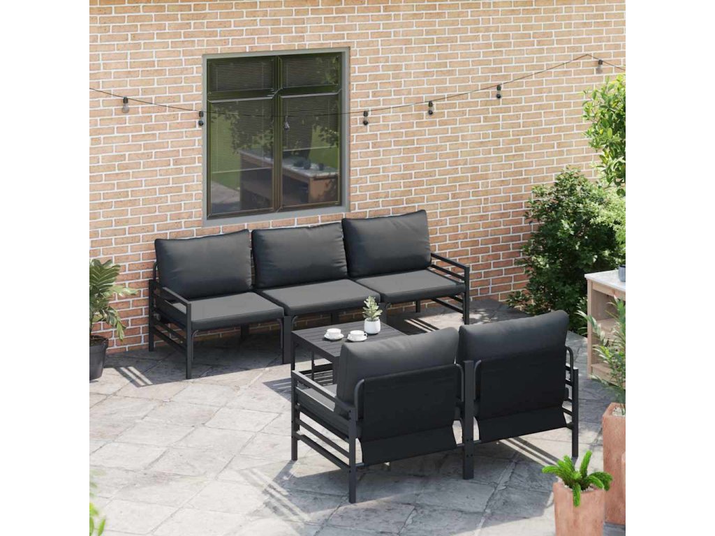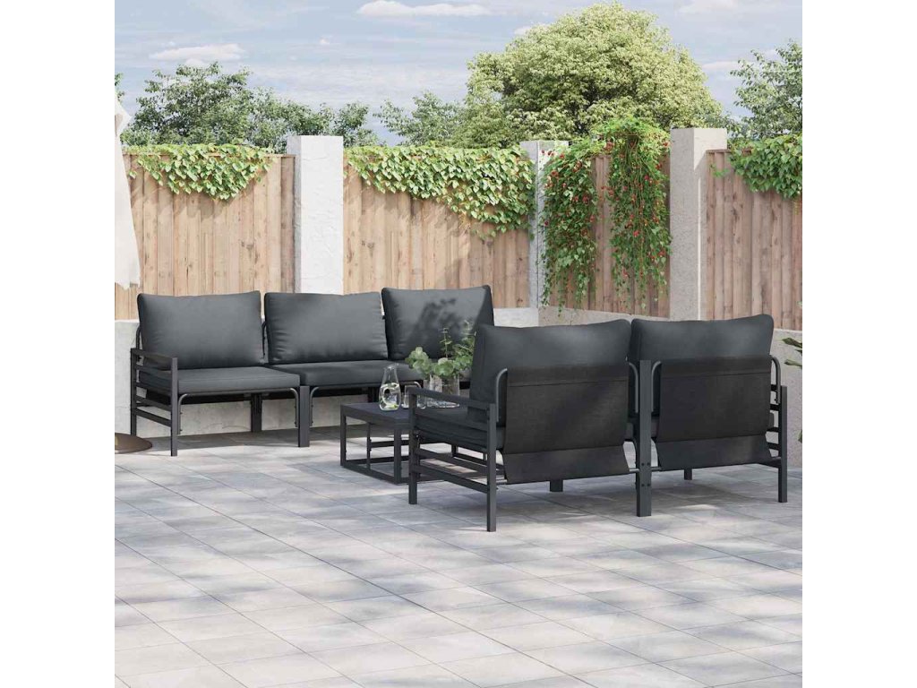 Sada zahradních pohovek s polštářem 6 pcs Černá Ocel 3378955