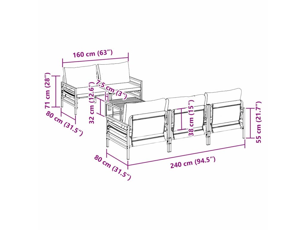 - 1 x střední sedák: 80 x 80 x 71 cm (DxŠxV)