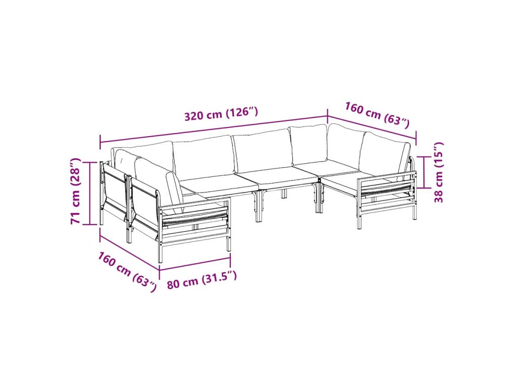- 2 x Rohová pohovka: 80 x 80 x 71 cm (DxŠxV)
