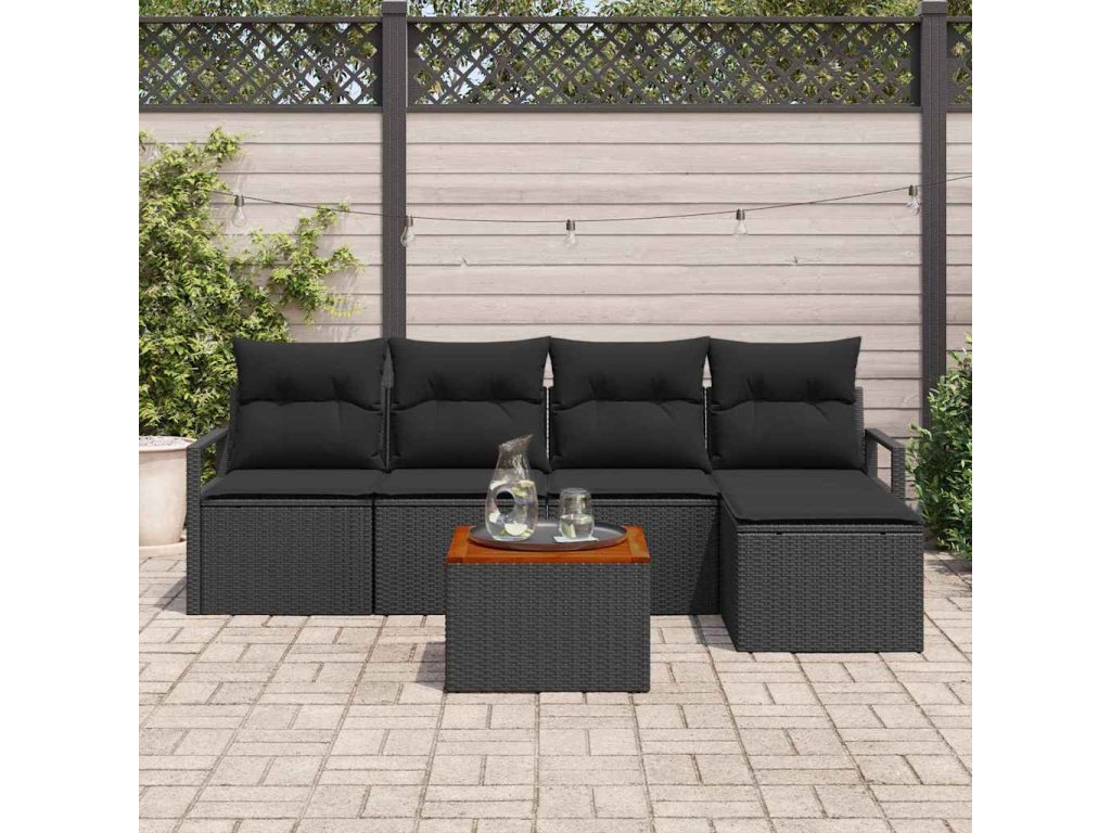 Sada zahradních pohovek s polštářem 6 pcs Černá Poly ratan 3347695