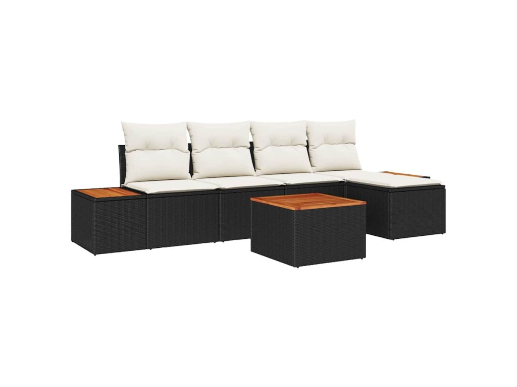 Sada zahradních pohovek s polštářem 6 pcs Černá Poly ratan 3348068