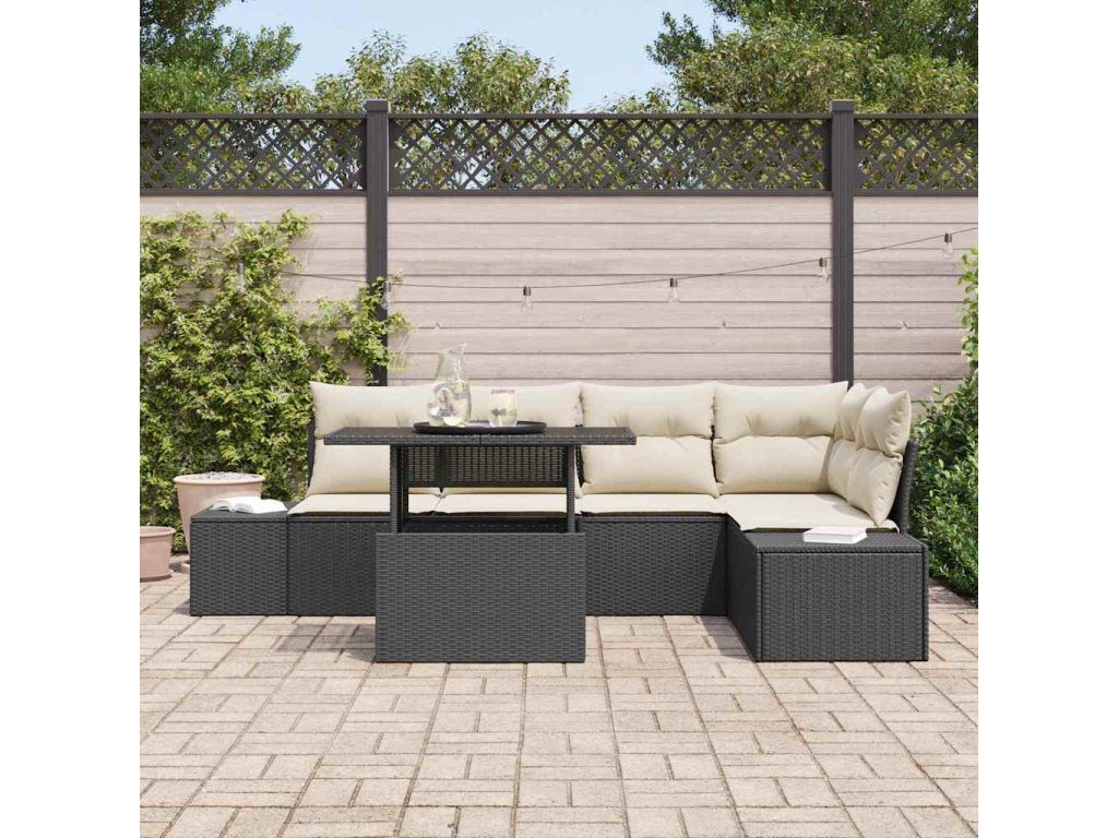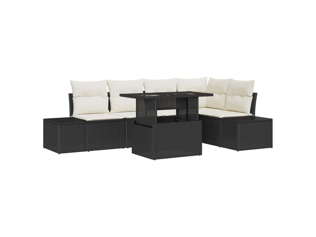 Sada zahradních pohovek s polštářem 6 pcs Černá Poly ratan 3349183