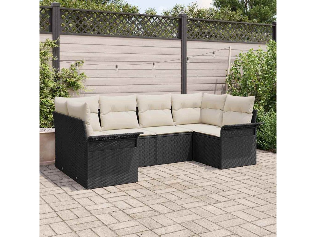 Sada zahradních pohovek s polštářem 6 pcs Černá Poly ratan 3354166