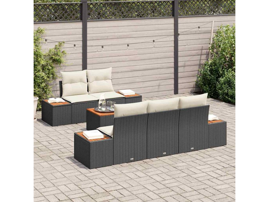 Sada zahradních pohovek s polštářem 6 pcs Černá Poly ratan 3356692