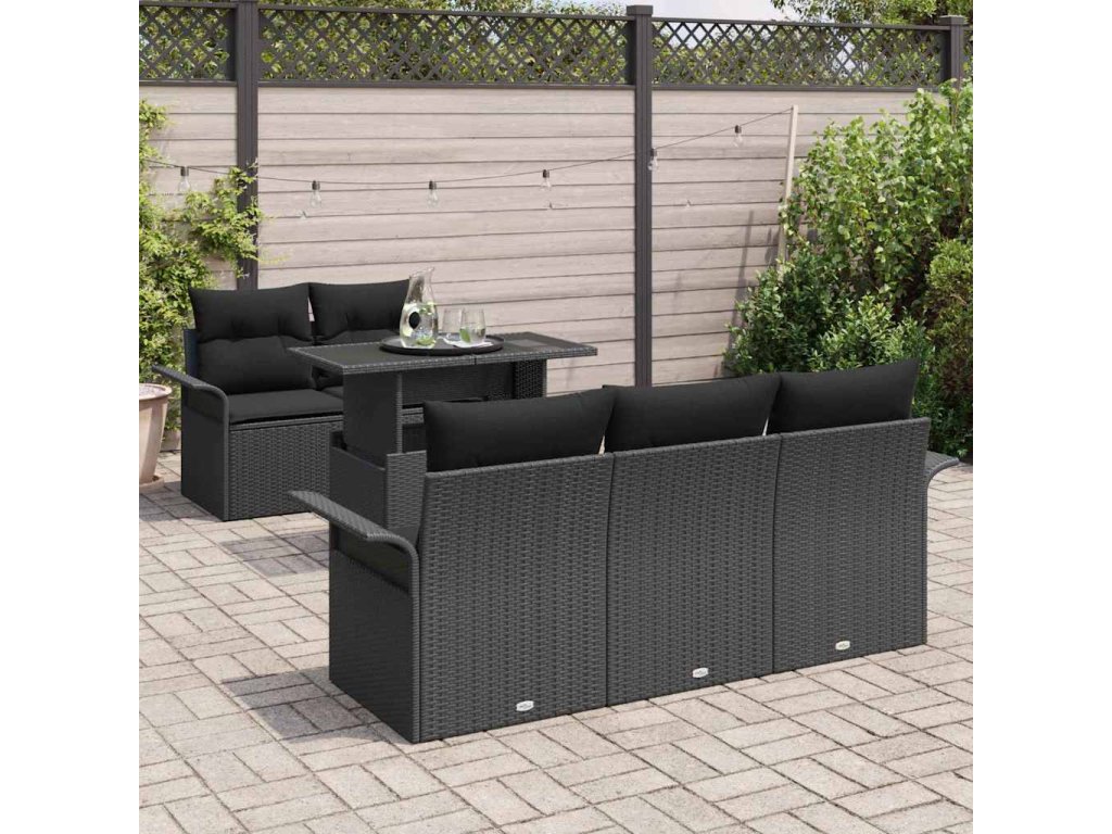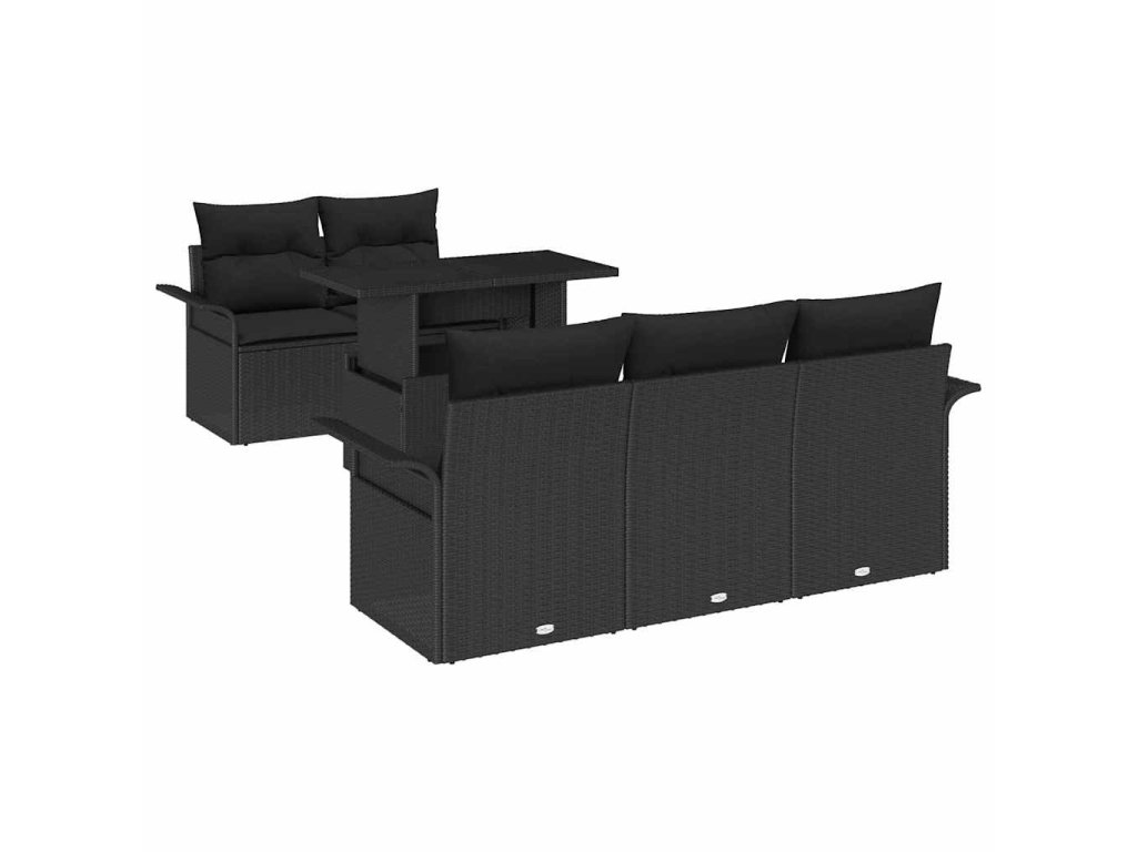 Sada zahradních pohovek s polštářem 6 pcs Černá Poly Ratan 3356936