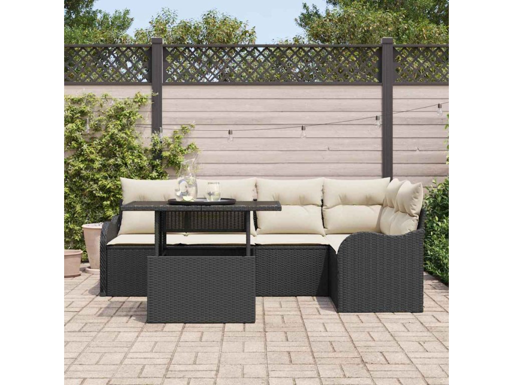 Sada zahradních pohovek s polštářem 6 pcs Černá Poly Ratan 3357200