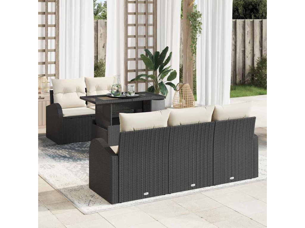 Sada zahradních pohovek s polštářem 6 pcs Černá Poly Ratan 3357290