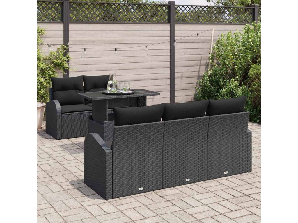 Sada zahradních pohovek s polštářem 6 pcs Černá Poly Ratan 3357296