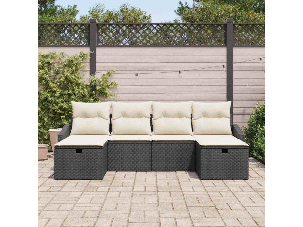 Sada zahradních pohovek s polštářem 6 pcs Černá Poly ratan 3359316