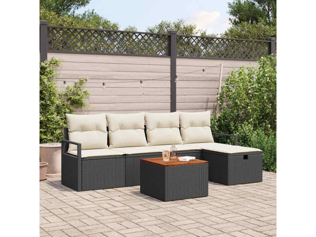 Sada zahradních pohovek s polštářem 6 pcs Černá Poly ratan 3359530