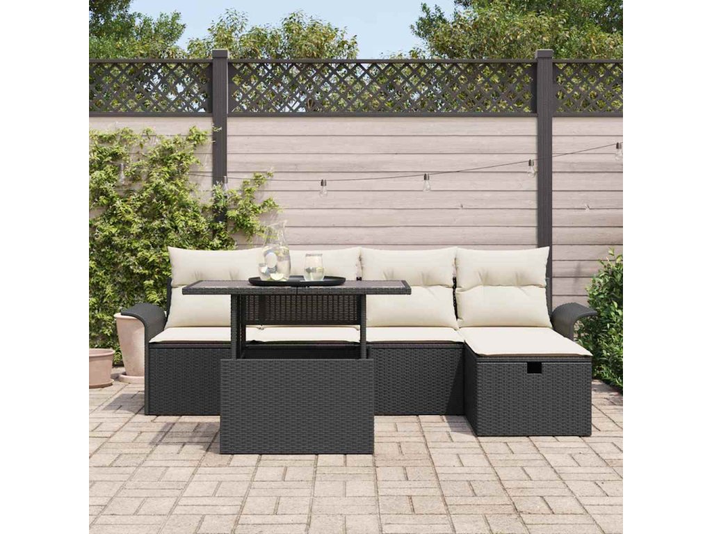 Sada zahradních pohovek s polštářem 6 pcs Černá Poly ratan 3359664
