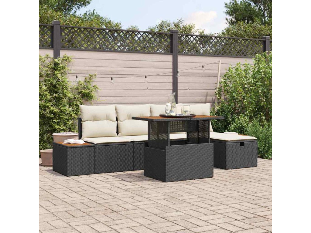 Sada zahradních pohovek s polštářem 6 pcs Černá Poly ratan 3360072