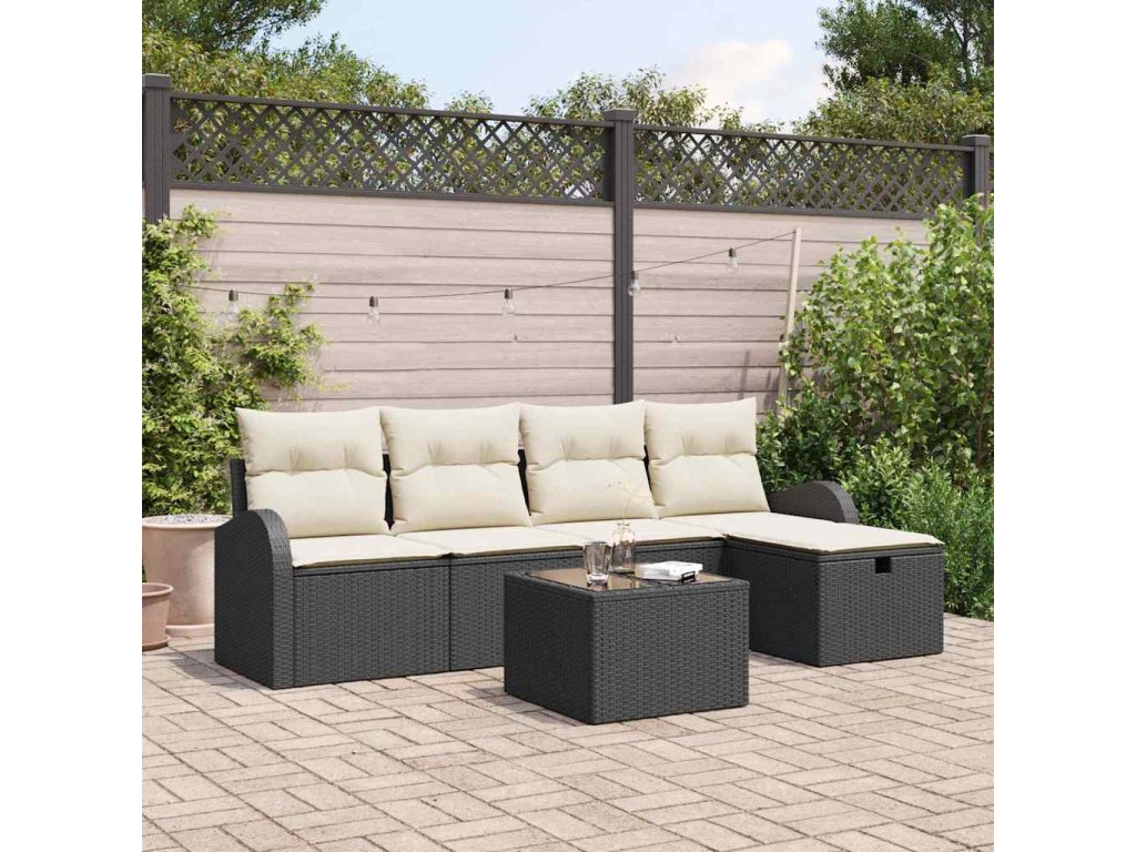Sada zahradních pohovek s polštářem 6 pcs Černá Poly ratan 3360398